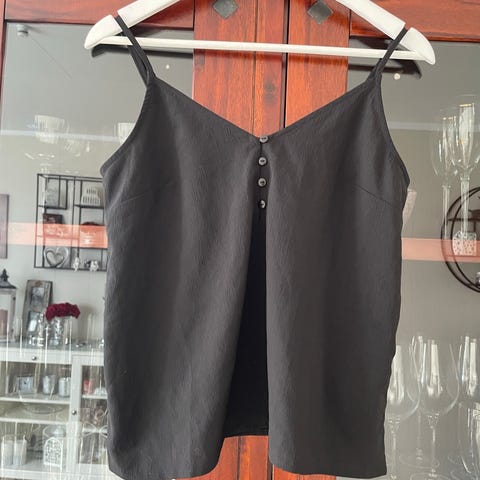 Superfin topp i sort med snøring. Toppen er pent brukt og er størrelse L. Jeg sender stort sett alltid første virkedag etter mottatt penger for frakt :)