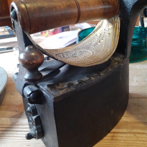 Veldig fint gammelt strykejern med stor eld-stein, alt i meget fin tilstand. selges kr 800.- + frakt.