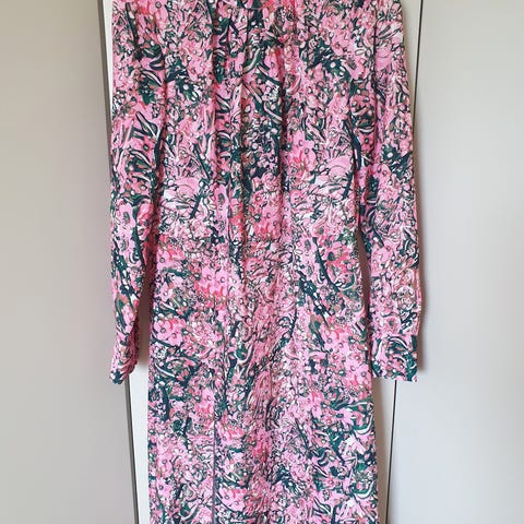 Kjole fra HM trend fra flere år tilbake. Brukt kun én gang. Rett modell til over kneet. Påsydde volanger foran og bak. Nydelige pastellfarger.