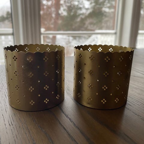 3 fine hjerteformet lysholdere med små rosemotiv selges for 80 kr.