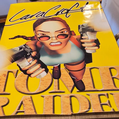 Vurderer å selge denne. Flott pappfigur av Angelina Jolie som Lara Croft i Tomb Raider. Denne sto i en Video Nova butikk som reklame for da den populære spillserien ble til film i 2001. Se bilder for tilstand, kan også sende flere bilder ved behov. Så vidt litt slitt/brettet i noen av de mest utsatte kantene, ellers veldig hel og fin. Fin å ha i samlingen for fans av både spillene/filmene eller dama. Send meg en melding ved interesse. Kan sendes på kjøpers regning, men bør vel kanskje hentes.