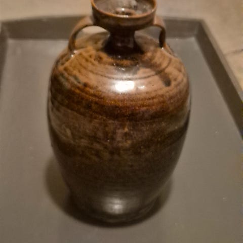 Veske i keramikk fra svensk keramikker i Gränna. Den er forseggjort, hel og fin. Artig pyntegjenstand. Høyde 14,5 cm. Bredde ca. 16 cm.
