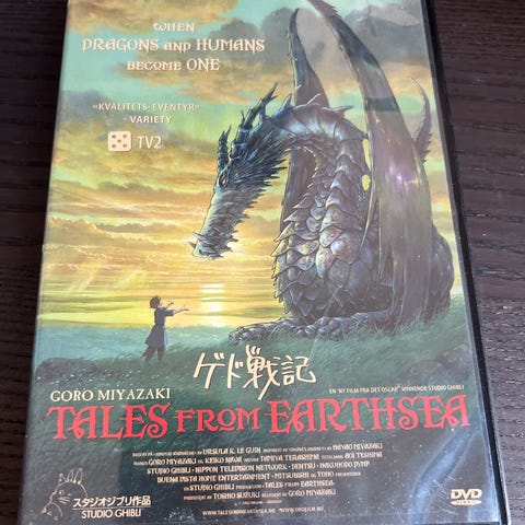 Helt nytt. Studio Ghibli Tales from Earthsea DVD. Inneholder filmen "Tales from Earthsea" regissert av Goro Miyazaki. Språk: Japansk. Teksting: Engelsk. DVD-format.