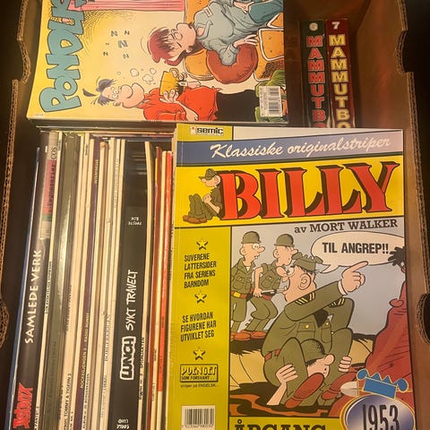 Billy, Lucky Luke, Sprint, Tintin og Viggo tegneseriebøker m.m.