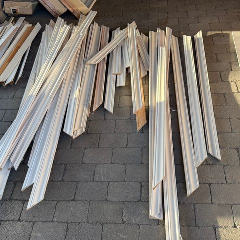 Hvitmalte lister til vegg/gulv og tak selges.