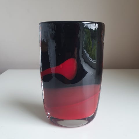 2 stk. Skjærgårdsvase 185 mm Hadeland Glassverk, designer laget vaser av Maud Gjeruldsen Bugge til salgs for kr. 450 pr. stk. Bør ses og må hentes. Kan nås på finn.no