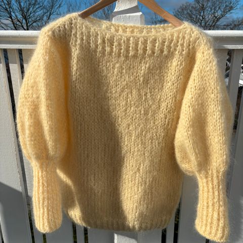 Sunday sweater strikket i tynn silk mohair og Sandnes sunday petiteknik garn .