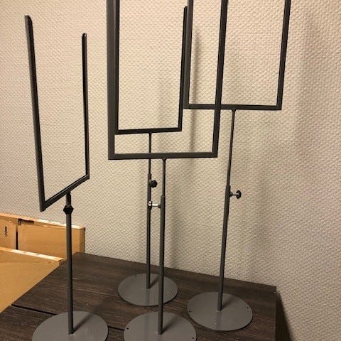 Hvis du er ute etter et plakatstativ for din restaurant eller en offentlig begivenhet, eller et notat- og presentasjonsstativ for lobbyer, kontorer og butikker, vil dette gulvstativet være en perfekt assistent for din reklame eller promoteringsplakat.