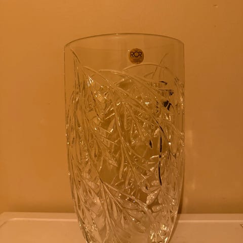 To fine vaser i krystall- hjort på den ene og blomstermotiv på den andre