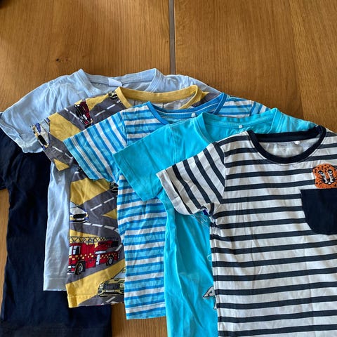 Dette er en klespakke med t-skjorter i str 8 år