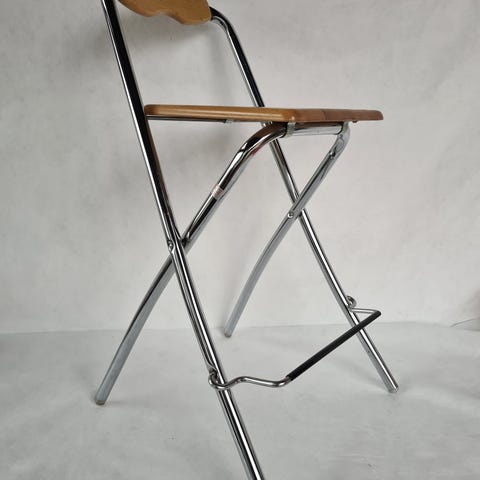 Selger to behagelige barstoler i fargen brun med metallstativ og fotstøtte. Sete er i størrelse 36x39 og kan justeres i sittehøyde 50-75 cm. Stolryggen er ca. 10 cm.