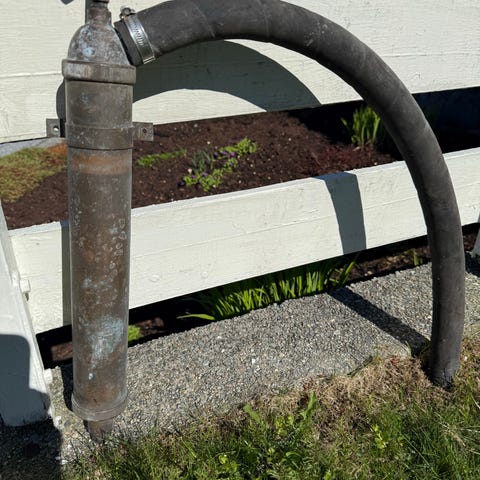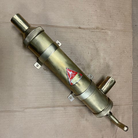 Eldre hånd lensepumpe i messing selges lenged ca 75cm d 10cm