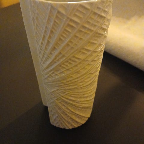 Høyde 29 cm. Bredde nede 8,5 cm. Bredde oppe 12,5 cm. Denne er fra GLASS THOMSEN. Helt feilfri