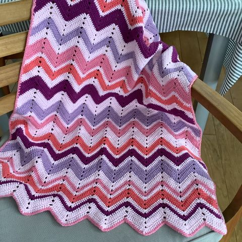 Håndstrikket teppe til barn i en nydelig mix av bomull, lin og viscose som regulerer temperaturen når det er varmt ute og inne eller for bruk inne. Målene er 76x60 cm og garnet består av 53% bomull, 33% viscose og 14% lin, Pris er med porto for sending med sporing