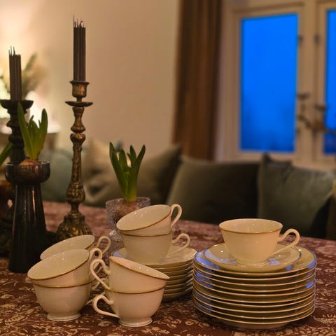 Middags-og kaffeservice fra Lidkøping selges samlet.