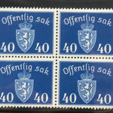 Norge postfrisk, nk tj. 91**, 70 øre brunoliven off.sak I, prima 4-blokk