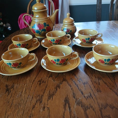 Kaffe og dessert servise fra Christine Holm, kinesisk porselen, produsert i England.