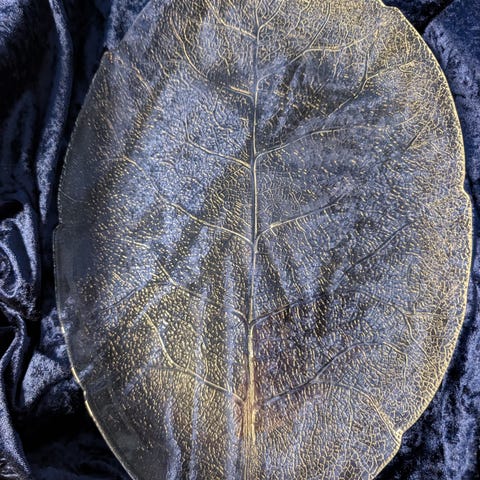 Flott langt fat - 47 cm . Glass med gull. Flott til eks. div frukt og bær.