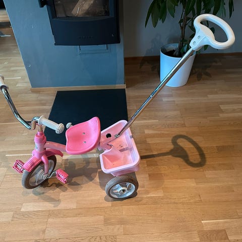 Nesten ubrukt og alltid lagret inne. Ser ny ut bare litt skitten på hjulene som lett vaskes bort :) sikkert maks brukt 5 ganger, selges da balansesykkel var mer populært. Nypris 1499kr