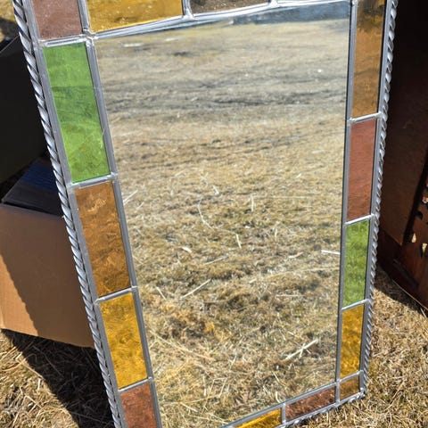 Vintage speil med farget glass og fine detaljer bly.