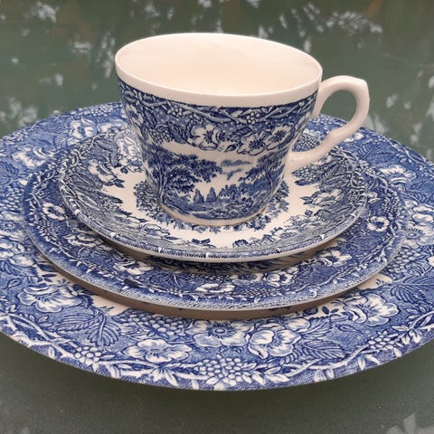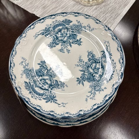 17 middagtallerkner D:22,8-24 cm (sår på 1, fargen er borte, nesten usynlig),