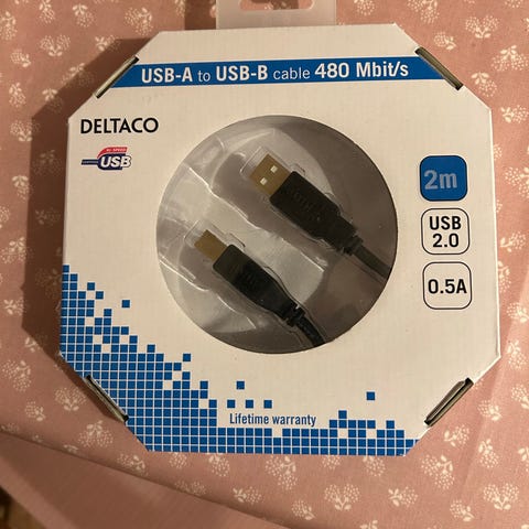 -2 Stk USB 2.0 A til USB B, grå/svart farge. Selges for 20kr/stk