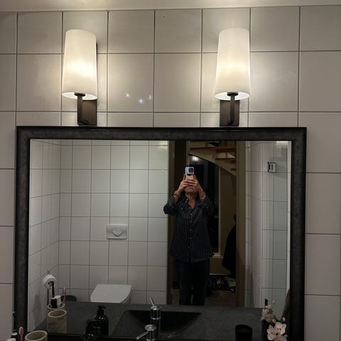 Høyt speil. Sølvfarget. Malingen på rammen skrapet bort ved uhell.