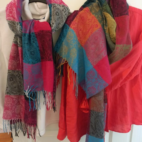 Pent brukte skjerf fra ulike kvalitetsmerker. Pris ved hvert bilde.