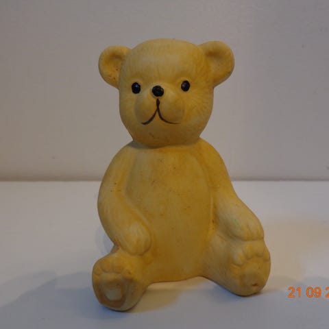 Sett av 3 fine Bamsefigurer i keramikk / Signert - Alf 92. -selges samlet. Str. 4,5 cm , 4 cm , 3,5 cm. ( 3 cm tykk, 2,5 cm tykk og 2 cm tykk.