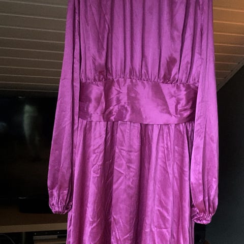 Nydelig selskapskjole i silke, orange/rosa farge. Litt vanskelig å «fange» farvene på bildene.