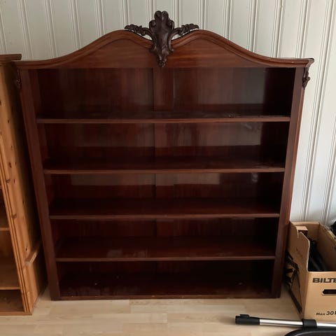 Nydelig bokhylle som ble laget ifm. mesterprøve av en møbelsnekker seint på 1800-tallet. Innvendige hyller ble fjernet ifm. lagring (vises på siste bildet), og settes enkelt på plass. Hyllen fremstår litt støvete på bildene, men er i helt perfekt stand.