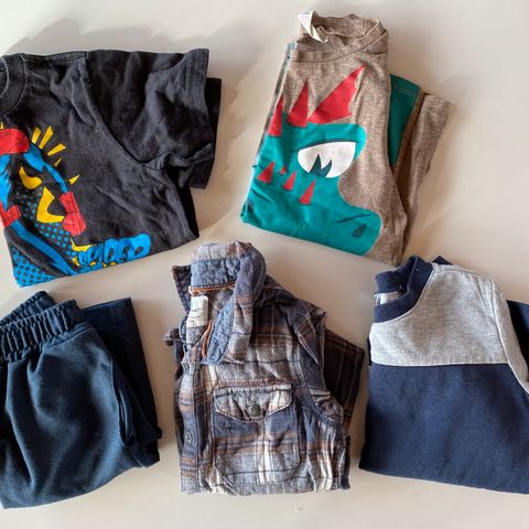 Diverse klær i str 98/104 selges. Se også nærbilder av hvert plagg. For priser, se nedenfor (kan også ordne pakkepris om mange plagg kjøpes);