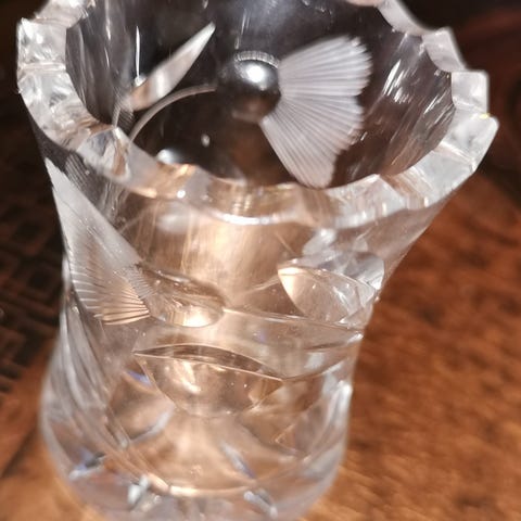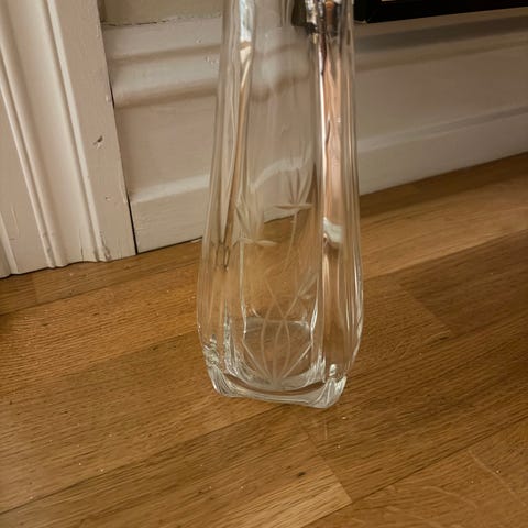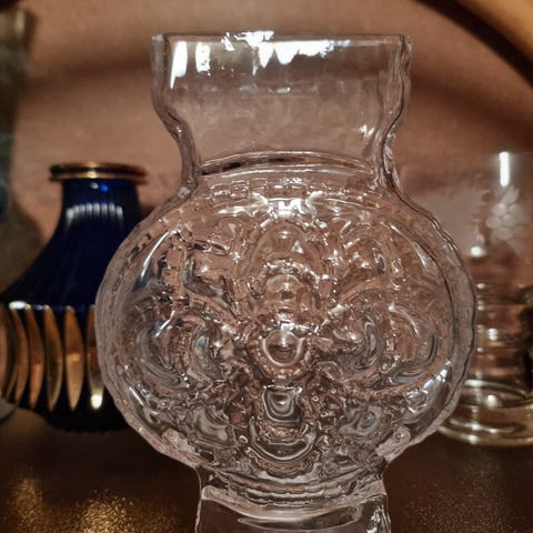 Flott gammel retro krystall vase av Lars Hellsten, Magnor Glassverk, selges.
