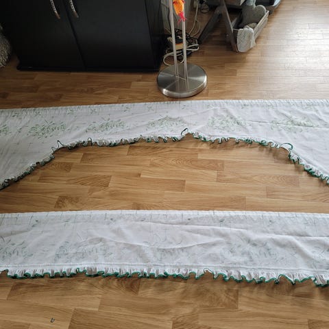 Ubrukte retro gardiner til kjøkken.