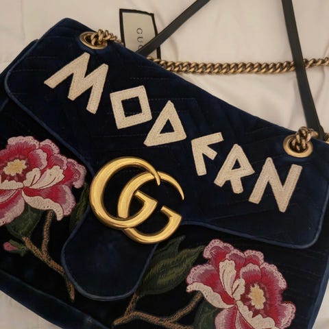 Meget pent brukt Gucci marmot Velvet veske vurderes solgt.