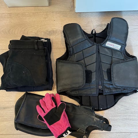 Vest, chaps, handsker, sporer osv