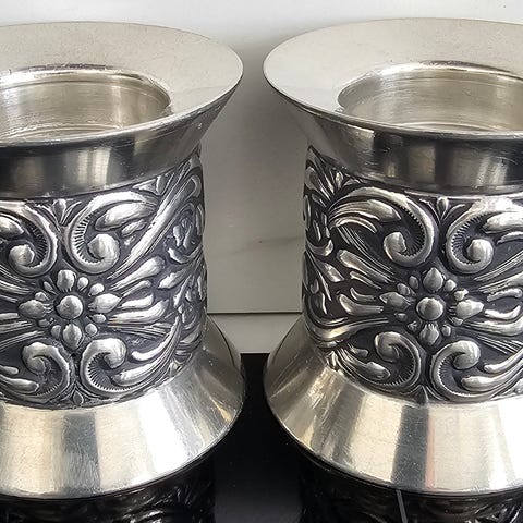 Oslo Metall - Perletinn # 0106 m/sticker og 2 stk Perletinn Lysestaker 98%.