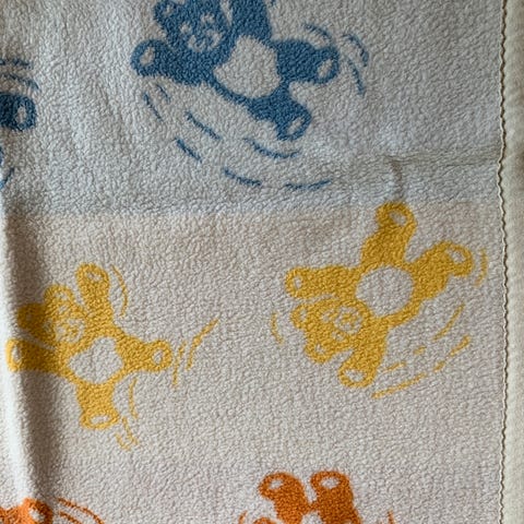 Noen som vil kjøpe dette koselig retro teppe. Teppet er etter min datter som ble født i 1979 Mål: 78 x 73 cm
