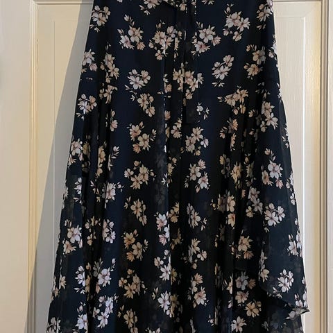 Sort bunnfarge og gammelrosa, pudder rosa små blomster.