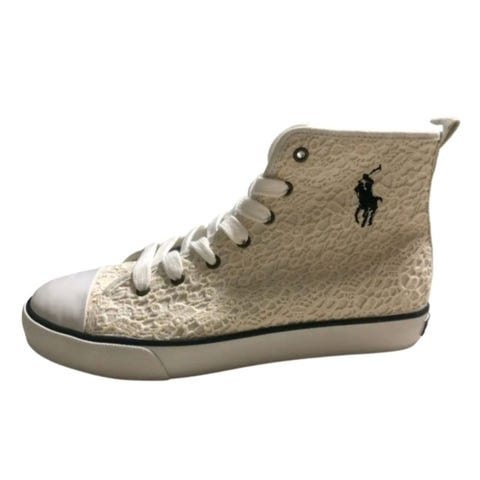Gucci Aspen Tan Leather Shearling Accent High Top sneakers.