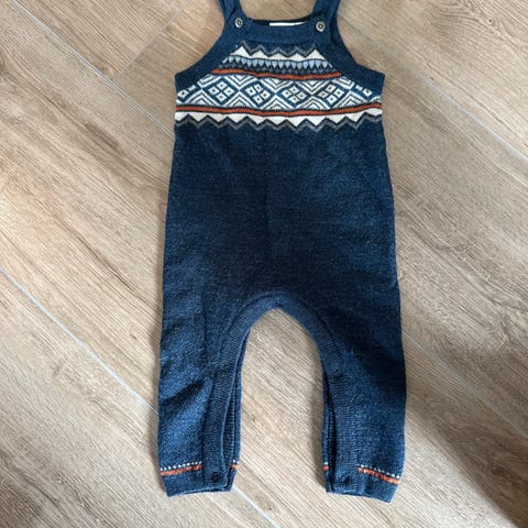 Name It ull til baby gutt. Mørke blå stikket selebukse i 100% ull med tradisjonelt strikkemønster, har justerbare seler. Den er fin å bruke med body under. Bruk den til hverdag eller når babyen skal pynte seg litt!