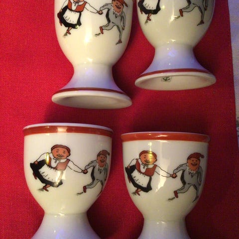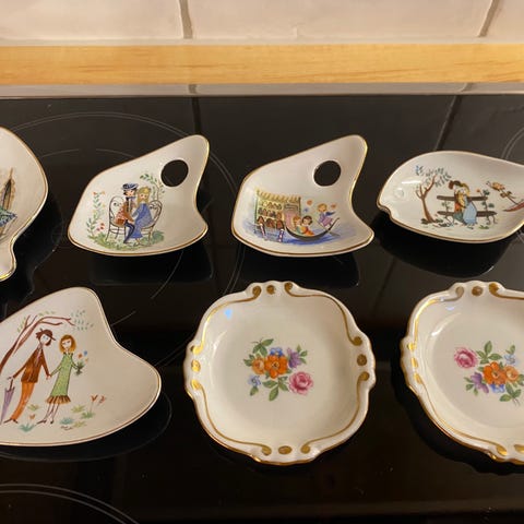 Selger flotte porselenspokaler med bilmotiv.