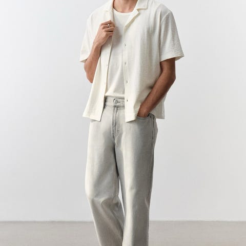 En behagelig, krøllfri skjorte, . Str M. Lite og pent brukt