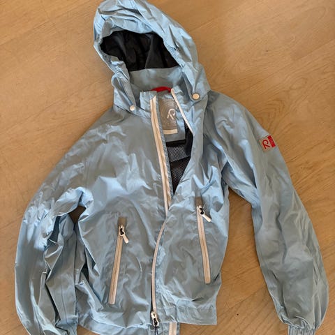 Selger en blå jakke. jakka har noen røde merker, men går nok vekk i vask.
