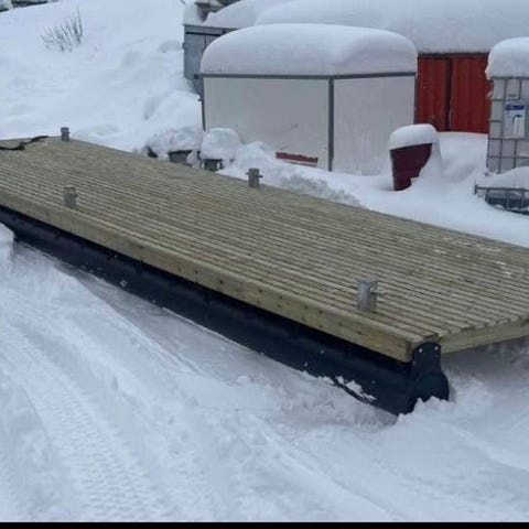 Vi lager også pontonger med festepunkter til de som vil legge bjelkelag og treverk selv. Dette gjør det naturligvis rimeligere og forenkler transporten ut til lokasjon.