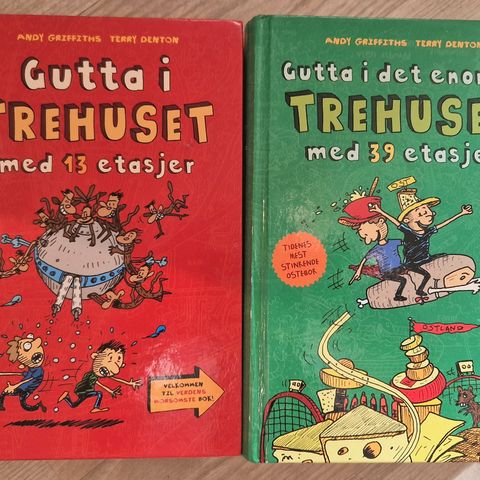 2 stk Barne/ungdoms bøker som nye: Gutta i trehuset med 13 etg… og med 52 etg… av Andy Griffiths.