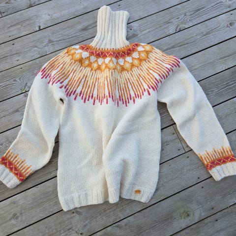 Nydelig håndstrikket ull genser sort/hvit hb kr 500