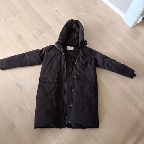 Superfin parkas fra danske Minimum. Mørk blå, str 40.