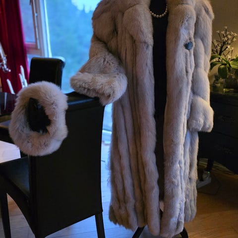 En flott blårevpels som kommer fra en person som har gått bort. Den er i hele skinn. Ingen skader eller sår i kåpen. 1,20 lengde. ( rygg og ned )