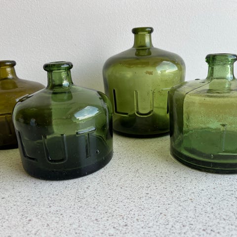 Herlige gamle flasker i brunt..En veldig stor og to liter vil jeg tro.